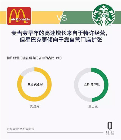 麥當勞靠的是特許經(jīng)營,而星巴克的幾萬家門店大多都是自營