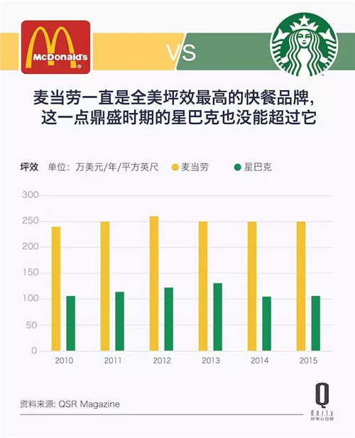 麥當勞比星巴克的坪效高,但每個星巴克員工為公司創(chuàng)造的收益比麥當勞要高