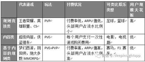 我們用一張圖表來(lái)說(shuō)明,規(guī)則類(lèi)、基于內(nèi)容的規(guī)則類(lèi)和傳統(tǒng)的純內(nèi)容類(lèi)游戲的差別。