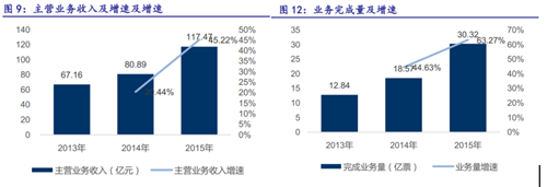 換言之核心速運業(yè)務(持續(xù)經(jīng)營業(yè)務)通過正常運營的利潤僅增加2.7億元。如果比較15年,主營業(yè)務利潤增速僅有13.8% (2.7/19.6),大幅低于62.85%。也低于其核心的時效產(chǎn)品收入增長(15%)。