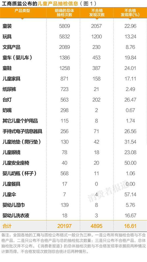 2017年5月,《消費(fèi)者報(bào)道》通過(guò)梳理全國(guó)126個(gè)工商與質(zhì)檢部門10年來(lái)公開的20197條兒童產(chǎn)品抽檢數(shù)據(jù),作出不合格品牌黑榜警示,以及重點(diǎn)不合格產(chǎn)品類型的消費(fèi)建議。