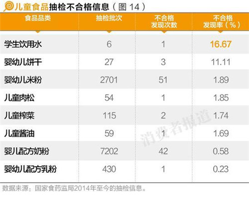 《消費(fèi)者報(bào)道》通過(guò)梳理國(guó)家食藥監(jiān)局2014年以來(lái)的12551條兒童食品抽檢數(shù)據(jù)發(fā)現(xiàn),兒童食品的合格率較高,達(dá)99%,而不合格品牌也是較為小眾品牌。本刊提醒消費(fèi)者謹(jǐn)慎購(gòu)買奶粉不合格次數(shù)較多的幾個(gè)品牌,如雅因樂、冠爾優(yōu)等。