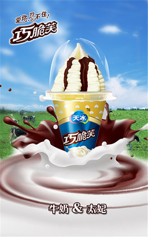 30多年專注于冰淇淋,天冰的積淀可想而知。巧脆芙這款產(chǎn)品的獨(dú)特之處還在于,外觀透明度很高,蓋子是礦泉水瓶材質(zhì),從三五米的高度摔下去不會(huì)摔爛。脆筒材質(zhì)也上佳,無論消費(fèi)者在哪吃到巧脆芙,吃到的都是是脆脆的感覺。巧脆芙里的巧克力則是由天冰自己精心打造研磨的。至于冰淇淋的奶源,則全部來自新西蘭的進(jìn)口奶粉,酸奶和鮮奶,則采自河南名知的企業(yè)花花牛乳。