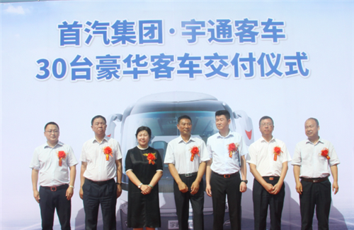 8月4日上午,鄭州宇通客車股份有限公司(簡稱為:宇通客車)與北京首汽(集團)股份有限公司(簡稱為:首汽集團)在首汽集團舊宮停車場舉行了交車儀式,30輛宇通豪華客車正式交付。首汽集團常務副總經理高捷、宇通集團黨委副書記李遠征等領導,以及媒體代表共同見證了這一重要時刻。