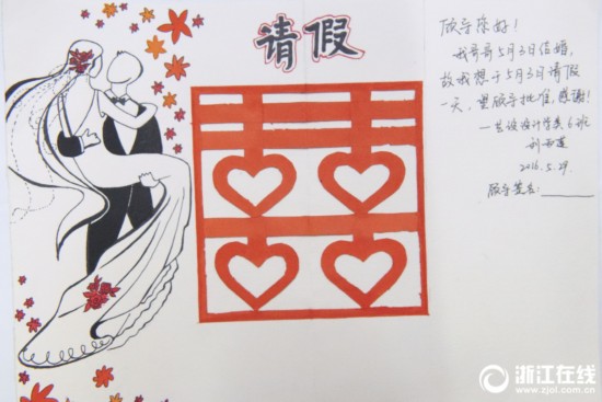 9月19日,在浙江理工大學藝術與設計學院,老師顧紅建正在展示學生們交上來的請假條。這些請假條風格多變,充滿創(chuàng)意,有簡筆畫風格的,也有抽象的。比如有學生畫了一班開走的列車和一個追趕的小人兒,表示趕不上末班車而遲到;有的把假條做成了賀卡,折頁打開一個大紅喜字,畫上浪漫的婚禮現場,用中英文寫上請假“文案”,原來是參加姐姐的婚禮。顧老師說,讓學生制作手繪假條,希望學生們學會在生活中用藝術語言敘事,同時也想幫學生們留下大學生活的回憶。(浙江在線記者 楊曉軒 李翔 于詩奇 攝)