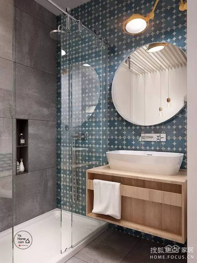 ▲ 補救妙招:后期多設(shè)光源,比如浴柜的鏡前燈。有的鏡前燈是自帶電源的,十分方便,或者直接安一個臺燈固定在墻面上,款式、顏色最好還是和衛(wèi)生間的風格保持一致。也可將浴霸燈泡換成節(jié)能燈管。