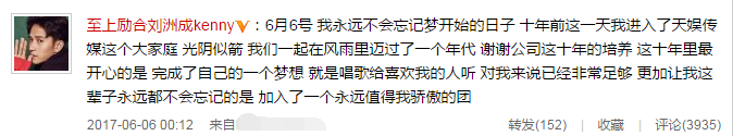 鳳凰網(wǎng)娛樂訊 6月6日,劉洲成在微博發(fā)文表示自己將離開待了十年的天娛,稱很感激公司這十年的培養(yǎng)以及能夠加入至上勵(lì)合這個(gè)組合,他說幾個(gè)成員都像他最重要的家人。他還表示,最近有人想要把這十年的努力毀掉。