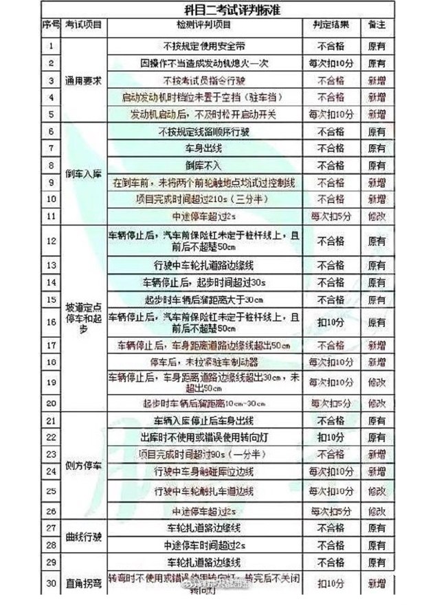 科目三修改和新增項(xiàng)目: