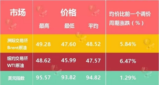 5月24日,因美國(guó)原油庫(kù)存減少,價(jià)格再度上漲,布倫特、WTI原油期貨收盤價(jià)格分別為48.61美元、48.62美元,其中WTI原油期貨價(jià)格再創(chuàng)去年10月以來的新高,比國(guó)內(nèi)成品油調(diào)價(jià)前分別上漲6.8%、9.2%。