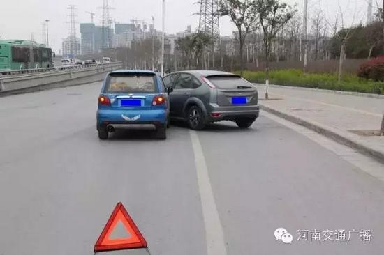 3、為避免發(fā)生次生交通事故,以及在處理事故時被當(dāng)成違法停車誤抓拍,請在事故處理完畢之前,全程開啟雙閃燈,放置三角警示牌;
