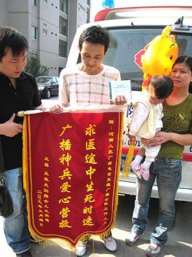 4月6日,在河南人民廣播電臺(tái)空中電波的幫助和協(xié)調(diào)下,衛(wèi)生、高速路政、交警等部門齊心協(xié)力,展開了一場挽救生命的接力大行動(dòng),信陽一名生命垂危的手足口病患兒王然得到了及時(shí)救助。經(jīng)過近一個(gè)月的精心治療,5月5日上午,王然康復(fù)出院,坐上了回家的列車。