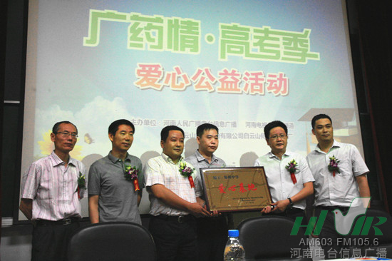 6月3號(hào),河南電臺(tái)信息廣播聯(lián)合河南電視臺(tái)第九頻道、廣州白云山何濟(jì)公制藥廠,在鄭州大學(xué)共同舉辦了以“愛(ài)心助高考 迎接新人生”為主題的“廣藥情 高考季”系列愛(ài)心公益活動(dòng)。
