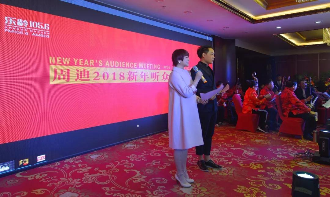 “我們的女神叫小周,美麗大方人優(yōu)秀。百萬戲迷手挽手,你主持的節(jié)目愛不夠,讓我們舉起歡慶的美酒,祝節(jié)目越辦越好與時俱進(jìn)競風(fēng)流……”伴隨著聽眾張學(xué)紅原創(chuàng)戲歌《我們的女神》,周迪2018新年聽眾見面會正式拉開帷幕。