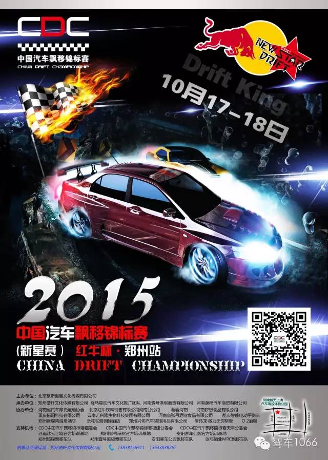 2015中國汽車漂移錦標(biāo)賽(新星賽)紅牛杯鄭州站10月17-18日兩天精彩上演1066必須也一定為大家謀取了門票福利。即日起至本月16日發(fā)送“漂移+姓名+電話號碼”至“駕車1066”公眾微信號即可獲得票價268元的門票兩張,雖說福利,你懂得!先報名先得,手快有手慢無哦……