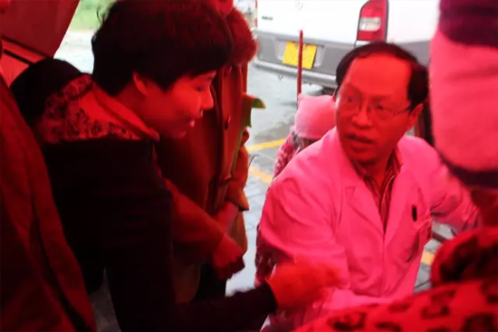 在寒冷的天氣中,為了能讓專(zhuān)家大夫們喝上熱水,紅改主任與柳青不斷的給大家添水。