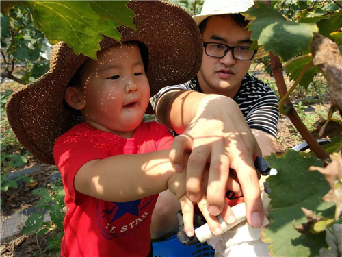 難得的親子互動(dòng)機(jī)會(huì),不僅能讓寶貝了解葡萄是如何生長(zhǎng)和采摘的,還能和寶貝來(lái)次親密互動(dòng)~