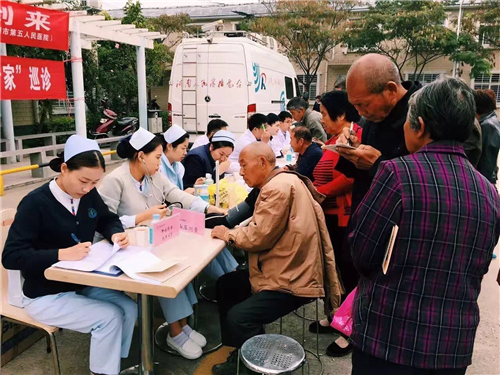 這位老人感動地說:“這些醫(yī)生真負(fù)責(zé),坐下幾個小時,忙得連點水也沒喝上!他們看我們歲數(shù)大了,看病不方便了,今天專門來這里,為我們看病、查身體,開藥,都不收錢,我們真高興,生活在這樣一個社會真知足!”