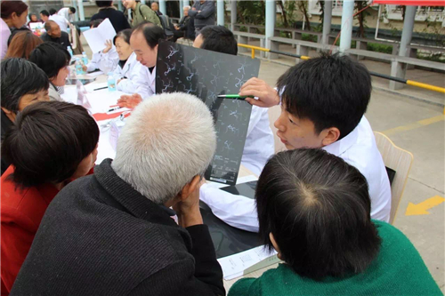 雖然天氣轉(zhuǎn)涼,但絲毫沒有澆熄大家的熱情,當(dāng)?shù)氐木用裨缭鐏淼搅x診現(xiàn)場,等候省會頂尖醫(yī)院專家為自己診斷,專家們也是十分準(zhǔn)時,提前到現(xiàn)場為患者看診。