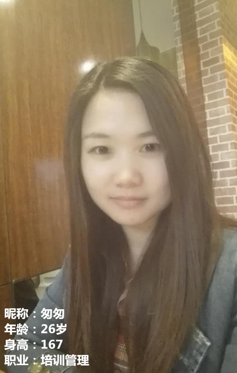 大家好,我是匆匆,今年26歲,在鄭州從事培訓(xùn)管理工作。繁忙的工作和生活,讓我不知不覺(jué)的剩了下來(lái),回頭觀望來(lái)時(shí)的路,卻驚訝地發(fā)現(xiàn)這么多年我的人生旅途中的桃花卻沒(méi)有盛開(kāi)過(guò),不禁陷入憂思和反思中,為什么我的條件也不差,卻一直過(guò)著單身的生活,或許自己太過(guò)忙碌,忘記了身邊的風(fēng)景,或許平時(shí)太過(guò)理性,在成長(zhǎng)的過(guò)程中太過(guò)注重成熟忽視了一見(jiàn)傾心的偉大力量,又或許自己不夠勇敢,不敢去追求那份不論位置但求無(wú)愧于心的愛(ài)情。時(shí)光匆匆的走過(guò),不知不覺(jué)我已經(jīng)過(guò)了二十五開(kāi)始進(jìn)入女人真正衰老的旅程,好害怕在這最美好年華任憑自己悄悄地老去,因此今天我為了自己的幸福勇敢地跨出了第一步,你是在那個(gè)地方等我的人嗎,對(duì)于另一半說(shuō)實(shí)話我還真的沒(méi)有什么條條框框,但是就像買鞋子,不要求名貴漂亮,但一定要合腳。我希望他可以成熟、穩(wěn)重,可以作為一個(gè)依靠在我身邊,無(wú)論遇見(jiàn)什么事情都可以在一起承擔(dān),至于長(zhǎng)相及其他條件,希望他身高175cm以上吧,愿意在鄭州定居,可以養(yǎng)活自己和自己的父母即可。