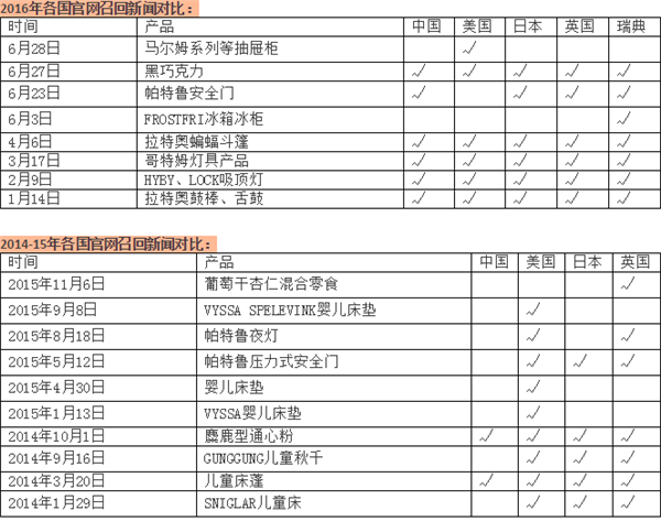 數(shù)據(jù)顯示,2016年宜家產(chǎn)品召回中,中國有兩次未與其他國家同步,包括FROSTFRI冰箱和馬爾姆系列等抽屜柜。而在2014-2015年間,宜家10類產(chǎn)品召回,8次不涉及中國。相比之下,美國僅有一次被“落下”。