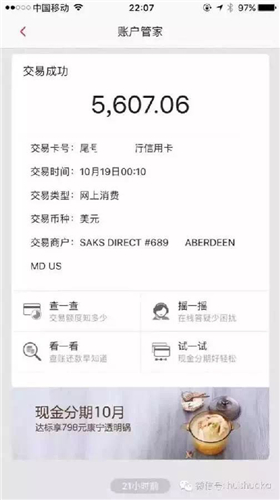 10月19日凌晨,市民王女士被接踵而至的三條信息叫醒,看過之后她睡意全無(wú),這是三條信用卡的消費(fèi)記錄,記錄顯示自己的招商銀行信用卡共消費(fèi)8035.97美元,按照匯率差不多是54000元左右。