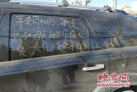 映象網(wǎng)快訊(記者 邱延波 文/圖)眾所周知,在全國各地,大爺大媽們對廣場舞的熱愛,幾乎是風(fēng)雨無阻,雷打不動(dòng)。鄭州市一車輛停在路邊,影響了大爺大媽們跳廣場舞,是可忍孰不可忍,他們在車上寫下"通牒",提醒車主早點(diǎn)把車開走。