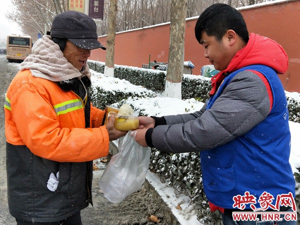 為了除雪工作,你們辛苦啦,快來(lái)喝一杯熱粥吧!”一杯杯熱氣騰騰的粥,一份份充滿愛心的加餐,讓環(huán)衛(wèi)工人在寒冷的冬日里感受到了陽(yáng)光般的溫暖。