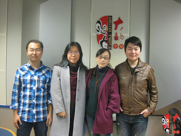 左起:河南電臺(tái)戲曲廣播《梨園留聲機(jī)》主持人王博,《梨園老照片》主持人曉雪,戲曲廣播副總監(jiān)張彤,品牌部主任月陽(yáng)