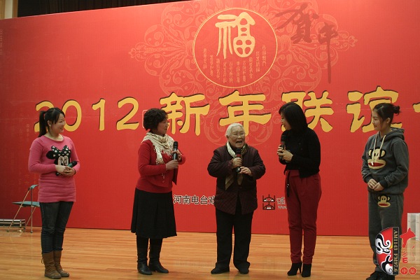 河南電臺戲曲廣播負(fù)責(zé)人、著名節(jié)目主持人木子與著名豫劇表演藝術(shù)家高潔及來及北京、河北、山東等地的戲迷共同表演《朝陽溝》中“親家母你坐下”對唱