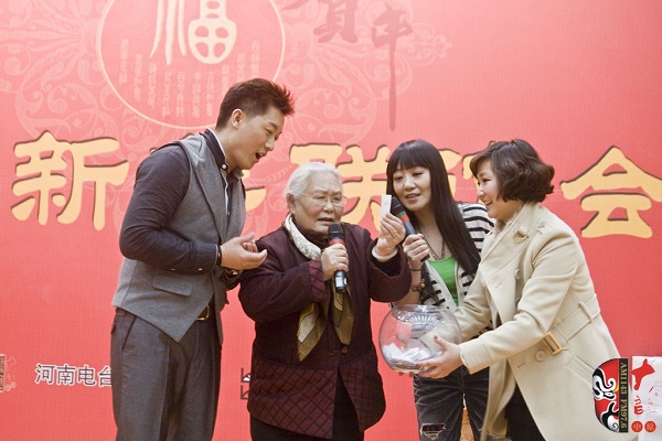 12月28日,一臺由河南藝術(shù)家及戲迷共同參與的新春聯(lián)誼會在河南廣播大廈舉行。本次活動由河南電臺戲曲廣播、戲曲出版網(wǎng)共同舉辦。聯(lián)誼會上,老中青三代名家與戲迷歡聚一堂,氣氛異常熱烈。曾經(jīng)在電影《朝陽溝》中飾演拴保娘的豫劇名家高潔、在電影《扒瓜園》中飾演國英的越調(diào)名家劉琳,中國戲劇梅花獎得主楊帥學(xué)、申小梅,豫劇《朝陽溝》中新一代“拴?!钡娘椦菡呤⒓t林,為現(xiàn)場熱情的戲迷表演了各自的拿手好戲。藝術(shù)家的精彩演唱博得現(xiàn)場觀眾叫好聲、掌聲不斷,戲曲名家與戲迷共同參與的互動游戲使得本次聯(lián)誼會高潮迭起……當(dāng)豫劇大師馬金鳳的身影出現(xiàn)在大屏幕上時,現(xiàn)場一片安靜。今年90高齡的馬金鳳大師在聽說戲迷聯(lián)誼會舉行的消息后,特別送來了新年的問候和祝福,馬老的祝福視頻播完,激動的戲迷爆發(fā)出一陣熱烈的掌聲……戲迷趙錢孫(網(wǎng)名)專程從北京趕來參加活動,這位小伙子是越調(diào)藝術(shù)的忠實(shí)的支持者,2007年他自費(fèi)創(chuàng)辦了中國越調(diào)網(wǎng),在宣傳和推介越調(diào)劇種方面做出了杰出貢獻(xiàn)。聯(lián)誼會上,他和其他四位越調(diào)戲迷自拉自唱了越調(diào)申派名段《收姜維》中的“四千歲你莫要羞愧難當(dāng)”,博得了現(xiàn)場觀眾的熱情掌聲。85歲的戲迷、著名戲曲活動家劉建勛老師為表達(dá)激動的心情,特別為本次聯(lián)誼會寫了一首五言律詩,獻(xiàn)給熱情的戲迷觀眾。 “歲末二十八,大地又回春。戲迷慶元旦,賓客多如云。久別重逢日,相見格外親。你拉我來唱,鄉(xiāng)音暖人心。唱出心坎語,唱出好精神,唱出凌云志,唱響河南人。共同來祝愿:活過一百春!聯(lián)誼會結(jié)束后,很多觀眾意猶未盡,久久不愿離去,他們紛紛與自己喜愛的戲曲名家溝通交流、合影留念。多位戲迷在接受采訪時說:感謝戲曲廣播舉辦了這次聯(lián)誼會,不僅給戲迷提供了交流的平臺,而且拉進(jìn)了戲迷與名家的距離……(本次活動部分照片由小草提供)