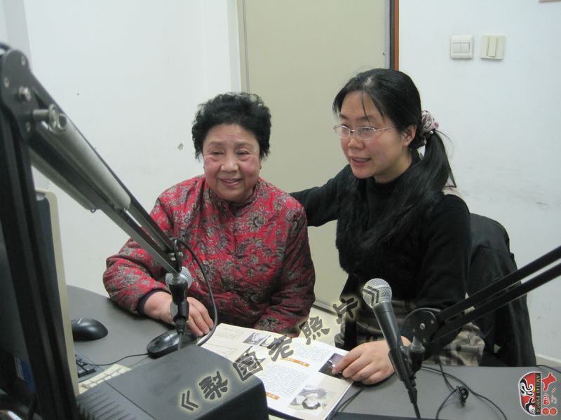 王素君(左)在河南電臺戲曲廣播錄音間錄制《梨園老照片》節(jié)目