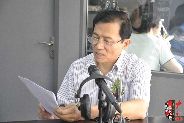 河南電臺(tái)戲曲廣播《戲迷樂(lè)》、《票友排行榜》主持人王博(左)在本次活動(dòng)戶(hù)外直播間