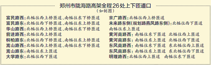 需要注意的是,由于地面一層、部分立交及上下橋匝道尚未完工,還不能完全發(fā)揮分流疏導的作用,高架開通后,嵩山路、大學路、京廣路、未來路、黃河南路、東風南路、明理路等下橋匝道車流會增大,給地面交通帶來沖擊,在部分區(qū)域可能會出現(xiàn)交通擁堵,到時可能會出現(xiàn)上橋容易下橋難的情況。