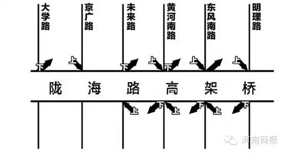 隴海路高架橋的各個上下路口具體位置圖