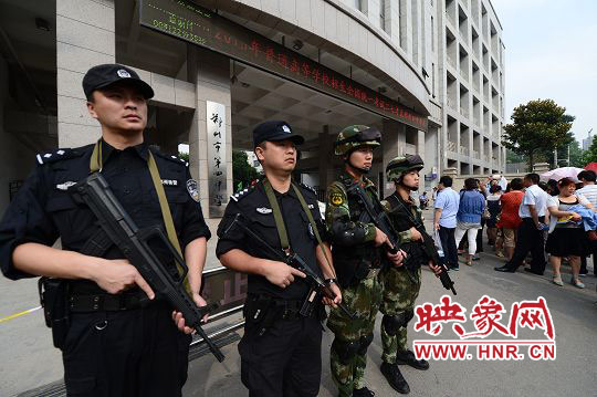 鄭州警方根據(jù)全市考區(qū)的實際情況進行了警力部署:市內(nèi)每個考點安排轄區(qū)派出所民警6名、交巡警6名、特警4名;上街、中牟、滎陽、新鄭、新密、登封每個考點安排執(zhí)勤民警16名,其中:派出所民警6名、交警6名、特警4名。為全力服務(wù)考生,鄭州警方要求各單位執(zhí)勤民警在開考前1個小時到達指定崗位,認真履行各項職責,考試結(jié)束40分鐘后撤崗。對位于繁華路段、周邊治安復雜或交通擁堵路段的學校有針對性的增派警力,切實加強考點及周邊安全保衛(wèi)工作。