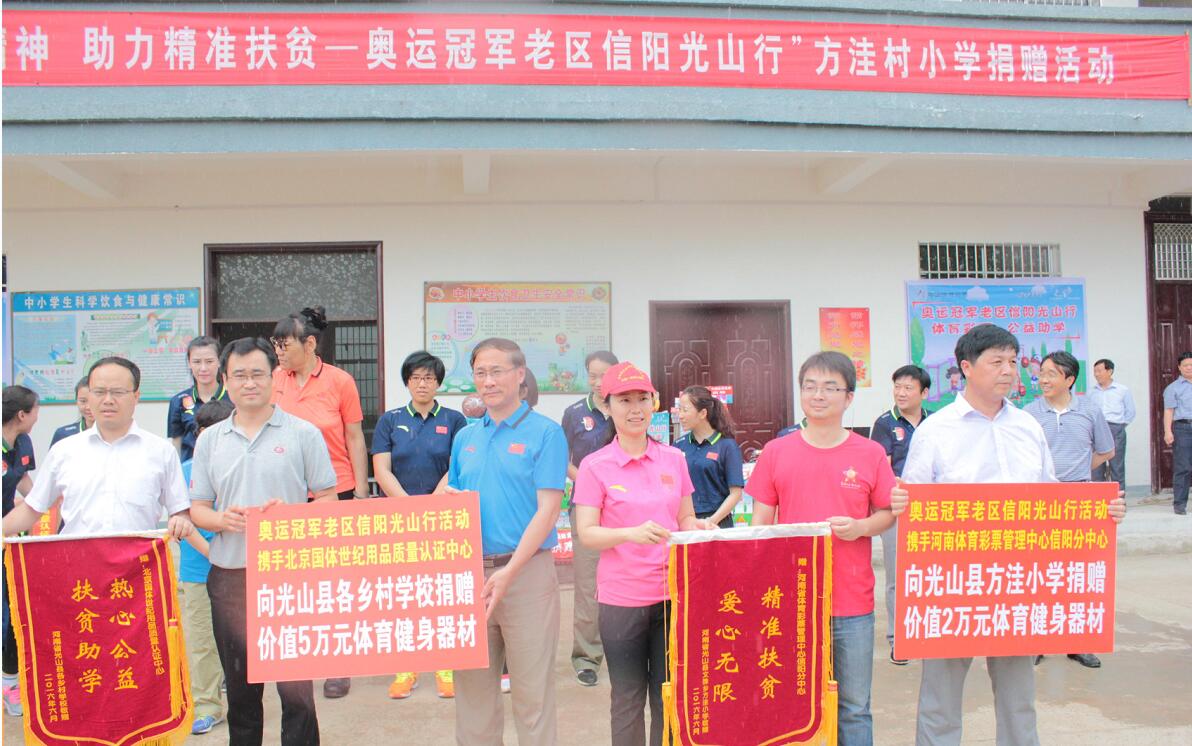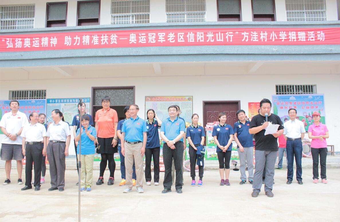 6月20日上午,由國(guó)家體育總局人力資源開(kāi)發(fā)中心、河南省體育局和信陽(yáng)市人民政府主辦,信陽(yáng)市體育局、信陽(yáng)市文明辦、信陽(yáng)市扶貧辦和光山縣人民政府承辦的“弘揚(yáng)奧運(yùn)精神,助力精準(zhǔn)扶貧——奧運(yùn)冠軍老區(qū)信陽(yáng)光山行”活動(dòng)啟動(dòng)儀式在光山文殊一中隆重舉行。