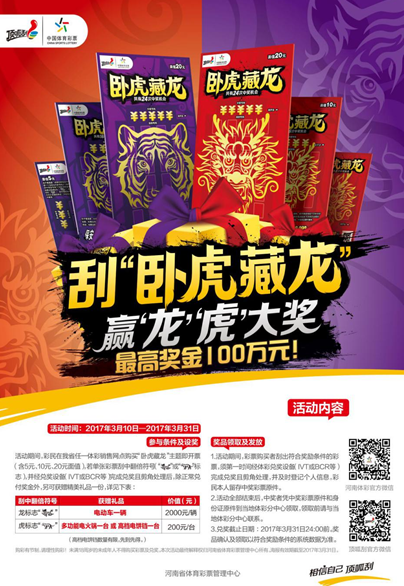 經(jīng)典套票激情會面,三重好禮重磅活動,百萬獎金愉悅暢享,盡在體彩“臥虎藏龍”。