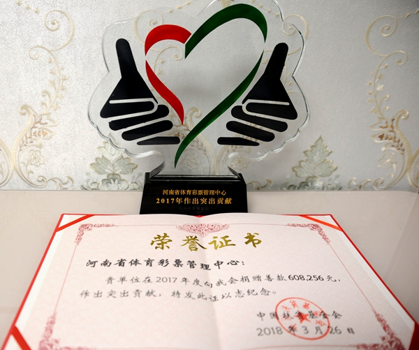 河南省體育彩票管理中心榮獲突出貢獻(xiàn)獎