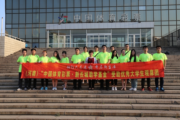 2017年,首批得到“中國體育彩票·新長城助學(xué)基金”資助的信陽師范學(xué)院2013級優(yōu)秀大學(xué)生畢業(yè)之際,河南省體育彩票管理中心還邀請其中的部分學(xué)生代表,在老師的帶領(lǐng)下到北京觀摩中國體育彩票現(xiàn)場開獎,在他們踏入社會進(jìn)入工作崗位之前,開闊眼界并深入了解和見證中國體育彩票作為國家公益彩票的公益屬性和公信力。