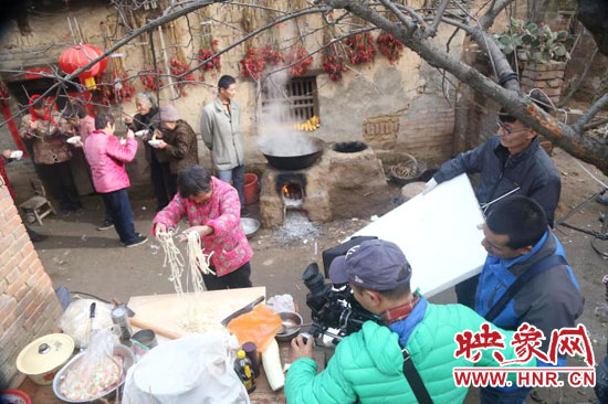 12月1日,公益微電影《母愛的味道》在襄城縣雙廟鄉(xiāng)虎張村開機(jī)拍攝。影片以蒙太奇手法推進(jìn):母親呵護(hù)襁褓中“嗷嗷”待哺的兒子,畫外音傳出的卻是6歲兒子的“嬉鬧聲”;6歲兒子撒嬌的“表情”與25歲時感激的“神情”蒙太奇手法切換;25歲時兒子“埋頭喝下一口面湯”與40歲時兒子“抬頭咽下一口面湯”蒙太奇手法切換等表現(xiàn)手法,使得故事溫暖而感人。