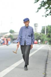 聽到提醒,楊松云利落地彎腰撿起竹椅下的拐棍,夾在腋下,然后邁著大步沿著公路走去。最多的時(shí)候要逛6個(gè)多小時(shí),每次都自己回家。楊松云說,自己過去彈棉花太忙,基本沒時(shí)間出門,現(xiàn)在閑了、享福了,還是要多走走,“把過去沒逛的街逛回來”。