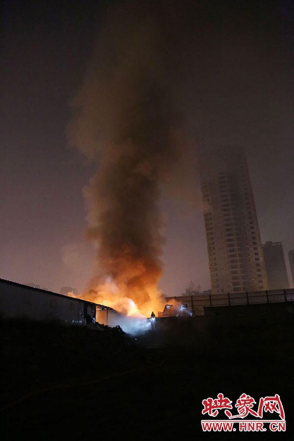 鄭州一工地深夜突發(fā)大火 近千只鞋子化灰