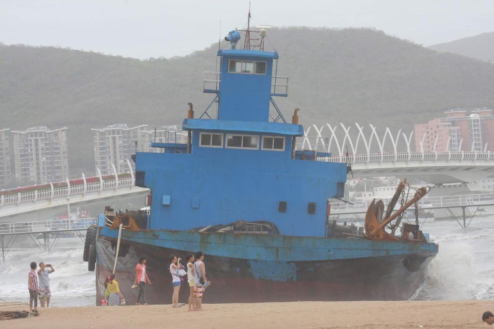 海南3艘大船被臺風(fēng)“鯨魚”刮上沙灘