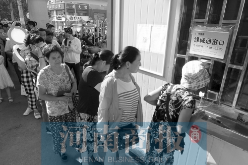當(dāng)天下午4點(diǎn)多,位于鄭州市醫(yī)學(xué)院立交橋北引橋下的公交卡充值點(diǎn)前人頭攢動,等候辦理業(yè)務(wù)的隊(duì)伍從窗口一直排到了馬路上?!皯?yīng)該多開幾個窗口?!蓖跸壬谂帕?0多分鐘隊(duì)后抱怨道。