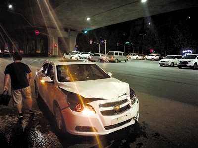 當(dāng)日凌晨1時(shí)10分,記者現(xiàn)場(chǎng)看到,南三環(huán)南半幅下橋口處,由西向東約30米的路面上布滿(mǎn)車(chē)身碎片,一輛白色雪佛蘭轎車(chē)??吭谧钣覀?cè)快車(chē)道上,車(chē)前臉已凸起,主副駕駛室的安全氣囊均已彈出,車(chē)輛仍處于啟動(dòng)狀態(tài)。