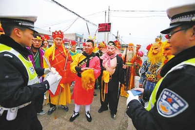 河南交警查車時發(fā)現(xiàn)一輛車由“孫悟空”駕駛,車上乘客則是《西游記》中的一群“神仙妖怪”,這則消息昨天成為網(wǎng)絡(luò)熱點(diǎn)。事情真相如何?昨天大河報(bào)記者聯(lián)系到河南省公安廳交警總隊(duì)相關(guān)人士進(jìn)行核實(shí)。