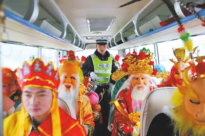 經(jīng)過省交警總隊(duì)核實(shí),濟(jì)源市交警支隊(duì)民警在執(zhí)勤中確實(shí)遇到此事。大河報(bào)記者隨后聯(lián)系到濟(jì)源市交警支隊(duì)宣傳科相關(guān)人士,他講述了這個事情。2月7日,濟(jì)源交警在濟(jì)源市207國道執(zhí)法服務(wù)站執(zhí)勤時,在檢查點(diǎn)攔下了“孫悟空”駕駛的一輛大巴車,令交警想不到的是,車上居然還坐著一車《西游記》中的“神仙妖怪”,其中有“唐僧師徒”、“財(cái)神”、“土地神”、“小鉆風(fēng)”、“牛魔王”、“獅子精”、“白骨精”等,“當(dāng)時我們民警檢查時感覺自己‘穿越’了”。