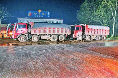 張亞麗介紹,為防止疑似超限超載車輛在深夜闖崗,交通、公安立即增派執(zhí)法人員,分組對車輛進行布控。13日凌晨3點左右,突然有十余名不明身份人員對執(zhí)法人員進行辱罵,并向執(zhí)法人員潑灑糞水,后又集結(jié)18臺疑似超限超載車輛強行闖崗,執(zhí)法人員立即采取果斷措施,在和孝營超限檢測站前將車輛攔停,并暫扣至卸貨場。
