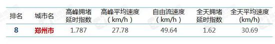 統(tǒng)計(jì)數(shù)據(jù)顯示,2017年第一季度,鄭州市全天平均通行速度為30.69km/h,擁堵排名第8。
