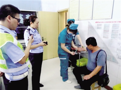 涉嫌酒駕司機(jī)接受血樣抽取等候進(jìn)一步處理